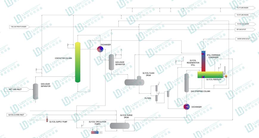 工藝描述:乙二醇,液體化學(xué)品,用于需要露點(diǎn)下降33°至66°C的應(yīng)用。二甘醇(DEG)、三甘醇(TEG)和四甘醇(TREG)用作液體干燥劑,而TEG仍然是吸附法氣體脫水最常見的液體化學(xué)品。