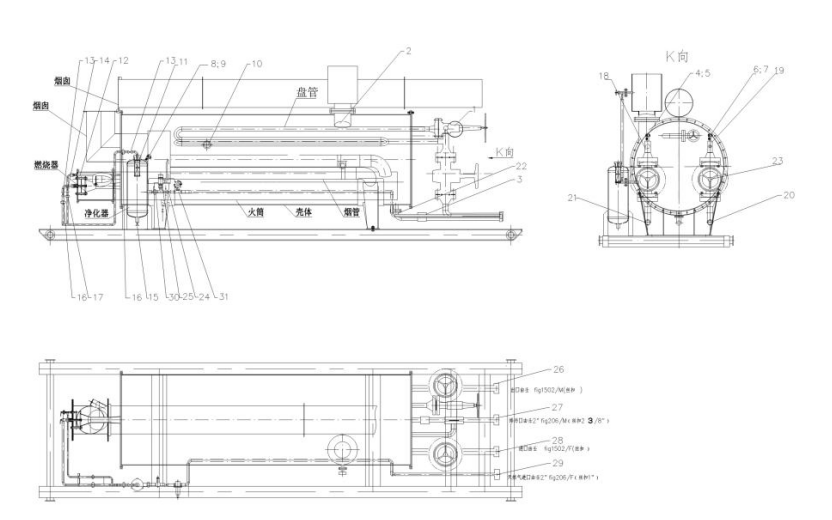 水套爐主體是指從兩端插入火管和工藝線圈的基本容器。燃燒器點(diǎn)燃燃?xì)饣蛉加?,將其吹入火管加熱容器中的水,熱水加熱盤管中的介質(zhì),如原油或天然氣。工藝線圈在水中“沐浴”,這就是為什么它被稱為水浴加熱器。